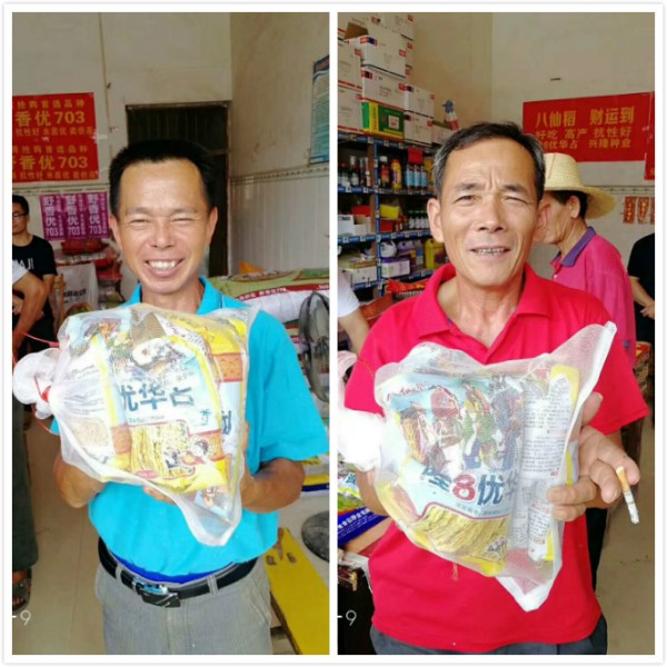 2015年區(qū)試,2016年續(xù)試,2017年國(guó)審,歷經(jīng)三年試驗(yàn)示范,隆8優(yōu)華占得到了廣大農(nóng)戶經(jīng)銷商的高度認(rèn)可。三年磨一劍、今朝露鋒芒,2018年的這個(gè)夏天八仙稻迎來(lái)了屬于它的時(shí)刻。 這個(gè)夏天最美的風(fēng)景就是老百姓手握著著豐收的希望,臉上展露的笑容。在老百姓的心中八仙稻是這一季豐收的希望。 "我要6斤","我要9斤","我要20斤",門店里此起彼伏的聲音里是老百姓對(duì)隆8優(yōu)華占的信賴和認(rèn)可,是他們對(duì)豐收的渴望。 火紅的六月,熱情的農(nóng)戶。品種這么多,你需要一個(gè)高產(chǎn)高抗米質(zhì)優(yōu)的品種,而我就是你最適合的那一個(gè)。一包又一包八仙稻在老百姓的期盼中走進(jìn)千家萬(wàn)戶,為他們送去了豐收的希望。