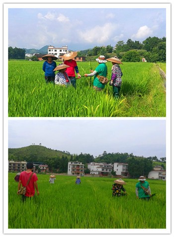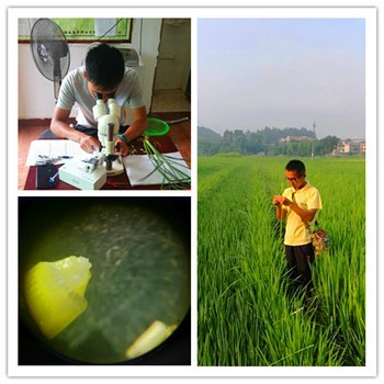 七月,在知了陣陣歡快地叫聲中,天氣一天天熱起來,夏天的味道愈發濃烈了。這是一年中最為繁忙的時候,邵懷基地的隆平生產人奔走在田間地頭,量田、繪圖、看花期、除雜、查看“920”噴施效果、趕粉,忙得不亦樂乎! 七月的田間,到處都是一片生機勃勃的景象,那排列整齊的稻苗就像訓練有素的士兵,放眼望去蔚為壯觀!生產人手持GPS行走在田埂上,盡管天氣酷熱難耐,道路崎嶇不平,但大家沒有半句怨言,步伐堅定。頭頂藍天白云,遠處翠綠的高山格外迷人,身旁不時有青蛙跳過,發出呱呱的叫聲,給原本平淡的工作增添了些許樂趣。運氣好的時候在田里還能撿到鴨蛋,這就算得上是意外的驚喜了。量完田后,借助繪圖軟件及時繪圖,為后期的隔離檢查做好準備。 七月初,綏寧兩系組合陸續進入幼穗分化,隆平生產人正忙著查看花期。分組合、分批次、分地點取樣后,借助細細的針頭在解剖鏡下一層層剝開幼葉,當幼穗出現的時候,我們總是興奮不已。剝檢分析讓我們心中大安:今年又將是一個豐收年。 七月的武岡,三系組合制種田里一派熱火朝天的景象,除雜工作正在進行。除雜對保障種子純度至關重要,除雜前,我們耐心地給工人們講解雜株的類型、識別方法、如何高效地除雜。當下田時,我們也不敢有絲毫懈怠,緊跟其后,對遺漏的雜株及時清理,并提醒大家再看得仔細些,確保清除到位。經過連續一個星期的奮戰,我們終于將雜株消滅干凈。 除雜的時候,噴施“920”也在同步進行。噴施完“920”的田塊,稻穗從葉子里爭先恐后地冒出來,短短幾天就全部集結到位。天氣晴好的日子,上午10點過后,芝麻粒大小的花粉陸續從谷殼里冒出,不一會兒就聚成一團,顯得格外熱鬧,正午時花開得最盛,空氣中彌漫著花粉的清香,深吸一口氣頓時讓人神清氣爽,這時也是趕粉的最佳時期。由于花粉存活的時間很短,水稻開花后要及時趕粉,在陽光正盛的時候,大家兩人一組拉著繩子的兩端,齊頭并進,把父本的花粉拉到母本柱頭上完成授粉。授完粉,再過十多天,田里的稻子就成熟了,我們將迎來一年的豐收,那也是隆平生產人一年中最幸福的時刻! 一路走來,伴隨田里的水稻一點點地長大:生根、發芽、開花、結果,我們在這個過程中不斷學習、成長,對制種事業的熱愛日漸濃厚,更加堅定了未來的奮斗方向:在今后的生產工作中,隆平生產人將繼續發揚腳踏實地的工作作風,不斷迎接新的挑戰,開創制種事業新輝煌!