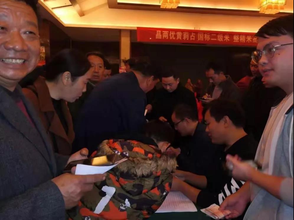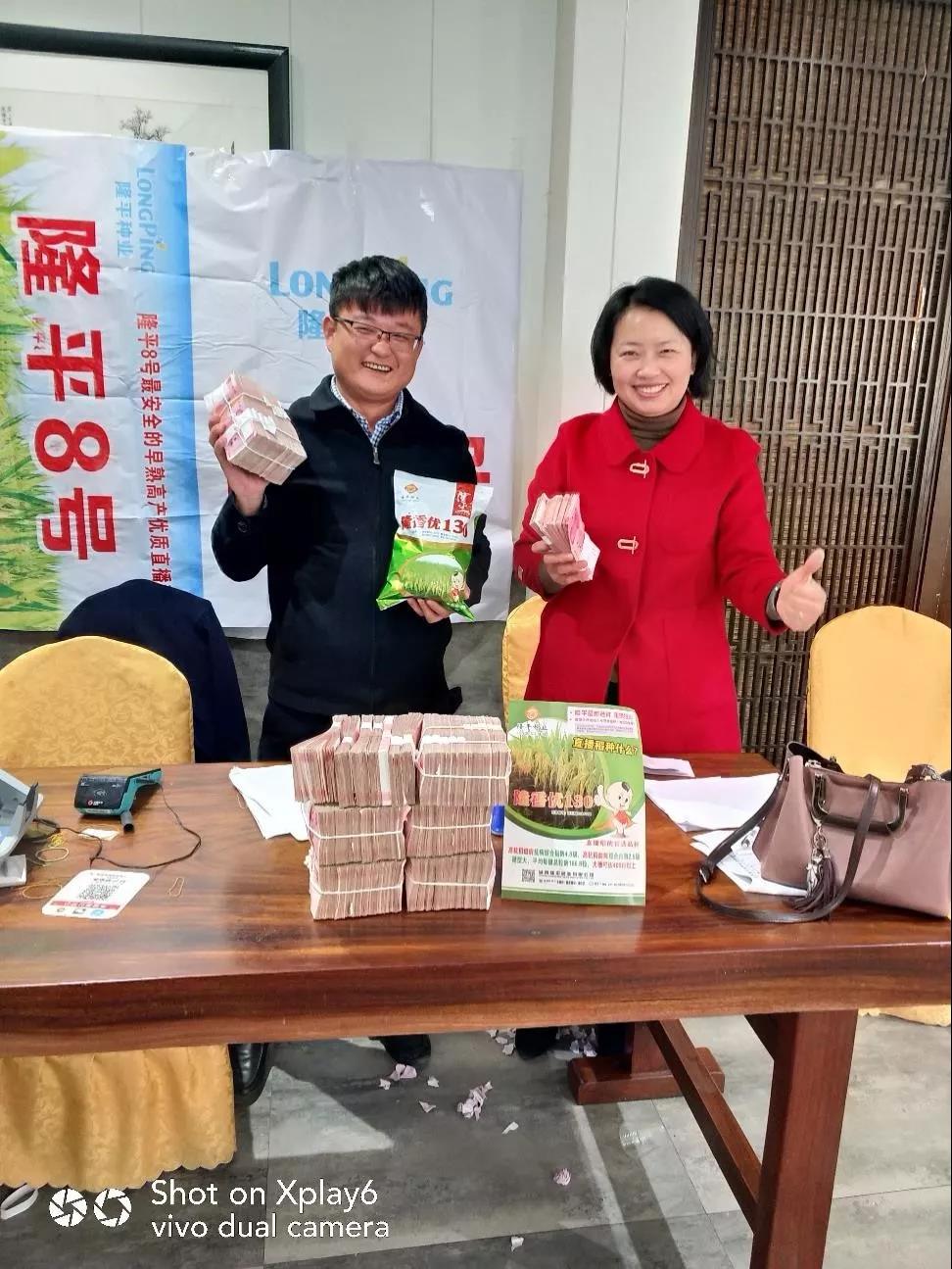 11月14日,湖北荊門牌樓隆兩優1206、韻兩優絲苗入戶加預訂會議現場到會90余人。共計2000多斤,現場收現金加微信轉賬共計34000多元!