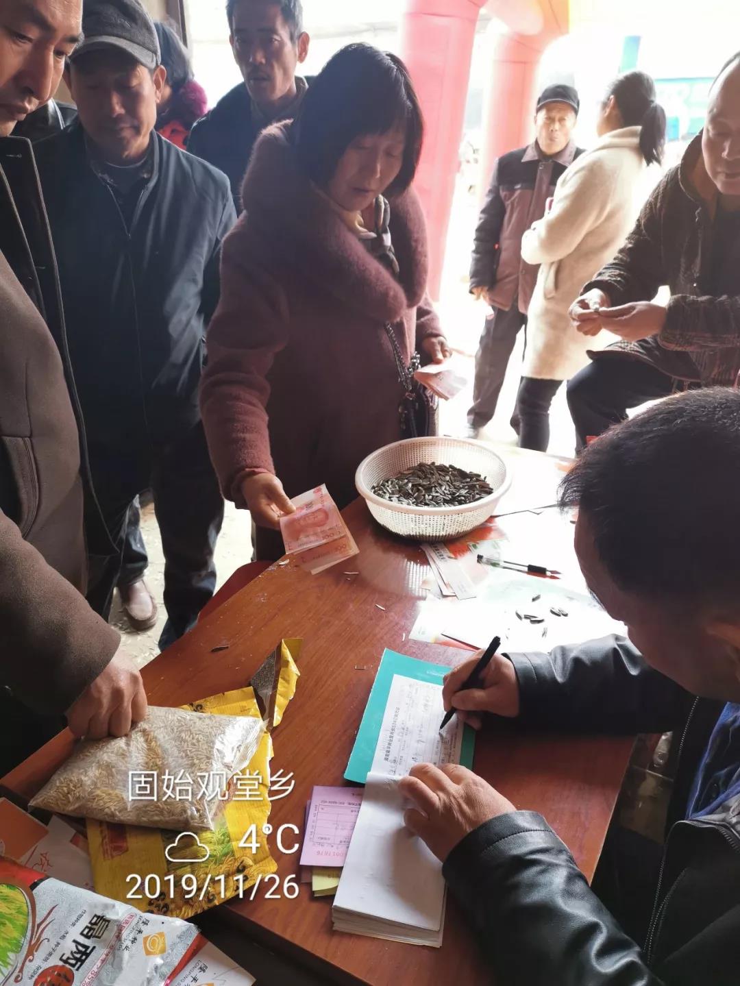 11月26日,河南固始縣觀堂鄉兩個零售商聯動入戶活動,現場入戶晶兩優華占+隆兩優534合計7084袋,預訂10040袋(暫時沒錢,沒給發種子,算預訂),累計收款12余萬元!