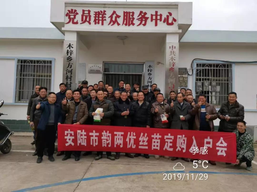 11月29日,湖北安陸韻兩優絲苗定購入戶會,到會40余人,定購近2000斤!