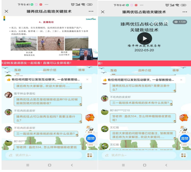 臻兩優鈺占是湖南隆平種業定位的優質高產型中稻超級大單品,是行業風口,更是財富盛宴! 5月20 日公司會務組邀請了湖南農大博士生導師、隆平種業首席栽培專家鄒應斌教授就《臻兩優鈺占高產栽培技術》對全國范圍事業伙伴、示范戶朋友開展了一場線上直播培訓。