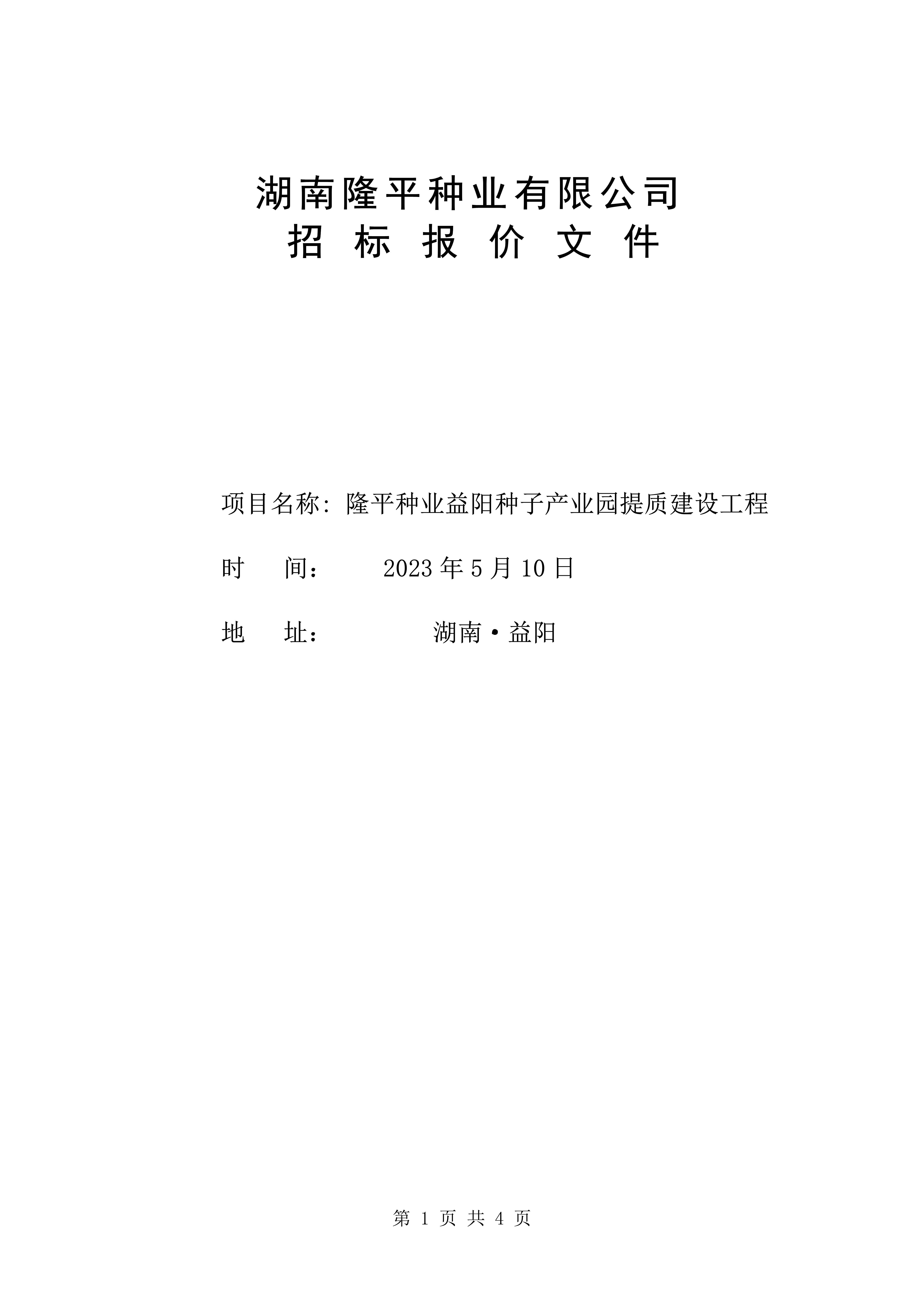 隆平種業(yè)益陽(yáng)種子產(chǎn)業(yè)園提質(zhì)建設(shè)工程招標(biāo)公告