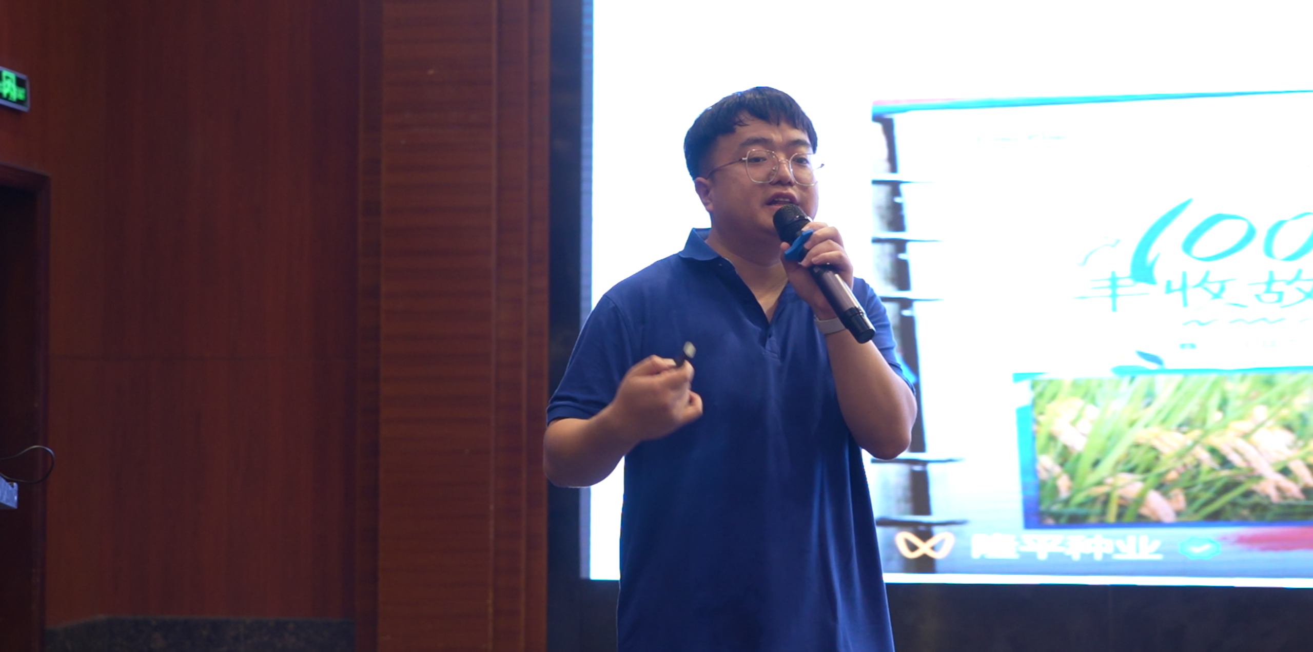隨后,市場營銷服務中心常務副總經理肖燃就“颶兩優8612示范表現及全程服務方案”進行了詳細闡述,肖燃表示:該品種在不同的生態區均表現突出,涌現出了大批的噸糧田。同時,肖總詳細闡述了隆平種業為客戶提供的水稻栽培專家團隊全程跟蹤服務方案,從田間管理到病蟲害防治,每一個環節都由水稻栽培專家老師跟蹤服務,發揮颶兩優8612的高產潛力,幫助農戶增產增收。
