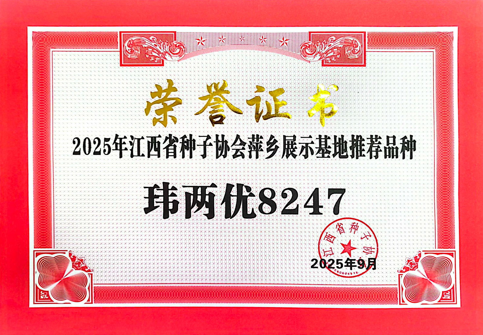 公司品種榮獲2025 年江西省種子協會萍鄉展示基地推薦品種
