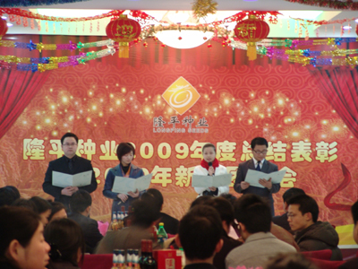 虎步奔騰開勝景,春風(fēng)浩蕩展鴻圖。2010年2月7日,農(nóng)歷小年,雜交水稻研究中心一樓宴會廳內(nèi),張燈結(jié)彩,春意融融,處處洋溢著喜慶。隆平種業(yè)在此隆重舉行2009年度總結(jié)表彰暨2010年新春團(tuán)拜會。隆平高科袁定江副董事長、周丹總監(jiān),公司全體經(jīng)營班子成員和全體在長員工共100多人參加此次盛會。