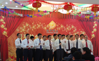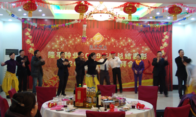 總結(jié)表彰后,公司員工還自編自導(dǎo)了多個精彩紛呈的文藝節(jié)目。各部門、分子公司員工的詩朗誦、獨唱、大合唱以及啞劇和舞蹈都贏得了現(xiàn)場觀眾的陣陣掌聲。節(jié)目最后,全體與會高管上臺參與舞蹈《印度新娘》,將活動推上了高潮。