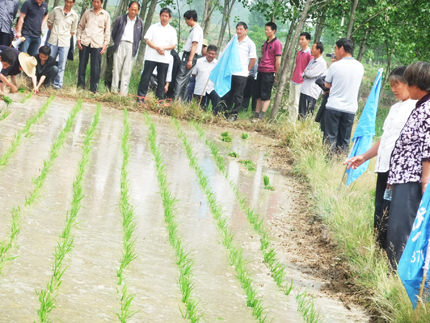 田間現(xiàn)場,公司組織專人進行了兩優(yōu)1128寬窄行栽培現(xiàn)場示范,給零售商和農(nóng)戶講解了兩優(yōu)1128寬窄行栽培技術(shù)、施肥方案及病蟲害防治等技術(shù)。