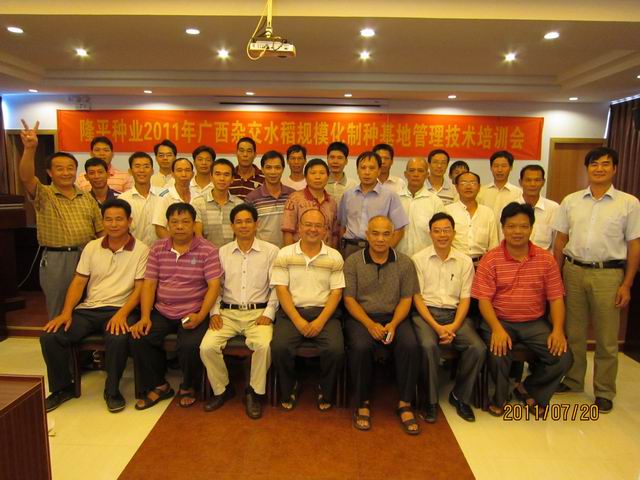7月20日,生產中心廣西基地2011年雜交水稻規模化制種管理技術培訓暨母本機插秧制種現場展示會在廣西南寧成功舉行,來自廣西生產基地的生產商和技術員及江西、廣東的生產商代表共35人參加了培訓。