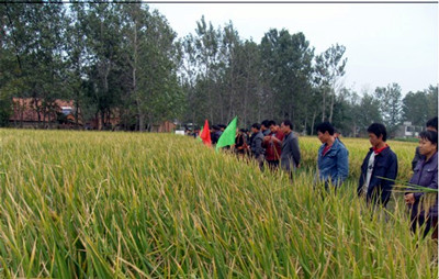 在當地零售商及農技站站長何正品的指導下,青洛示范田種植的兩優1128穗大粒多且病蟲害少。在滁州今年水稻成熟后期長期陰雨寡照、低溫冷害的天氣下,該品種長勢依然這么好,觀摩的種植大戶都說:“去年就知道1128好,但是在今年這種天氣下,其他品種要么病害很嚴重,要么倒伏很嚴重,但兩優1128還能這么好,穗子還這么大,這品種沒得說,明年就種這個!”