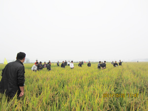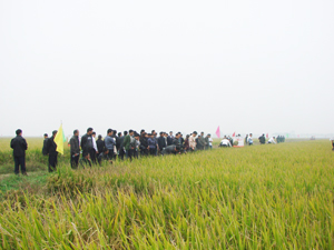 其次,經銷商和農戶還一起觀摩了公司的晚稻新品種深優9586、豐源優2297,大家對這兩個晚稻品種的株葉形態,耐寒性,抗倒伏能力和產量也大加贊賞。