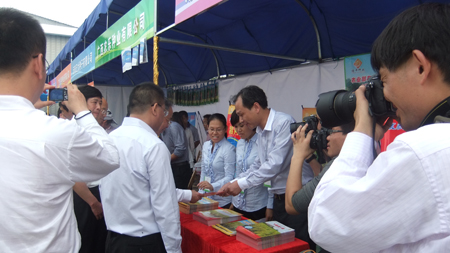 會議現(xiàn)場,農(nóng)業(yè)部原部長陳耀邦,國家農(nóng)技中心夏敬源主任、自治區(qū)政協(xié)農(nóng)業(yè)委員會黎梅松主任、自治區(qū)農(nóng)業(yè)廳張明沛廳長、中國水稻所程式華所長,南寧市肖志鋼副市長、廣西農(nóng)科院陳彩虹副院長、南寧市農(nóng)業(yè)局唐波文局長等領(lǐng)導(dǎo)來到我司的展臺前,查閱了超級稻的宣傳資料,肯定了隆平種業(yè)過去的成績,也勉勵我們再接再厲,不斷推陳出新,育出更好的品種服務(wù)農(nóng)民。