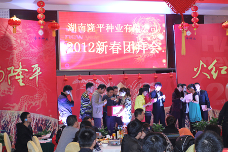 隆開盛世新春麗,平展宏圖大業嬌。揮別碩果累累的2011,隆平種業迎來機會與挑戰并存的2012。1月15日,公司2011年度總結表彰暨2012年新春團拜會在長沙開源鑫城大酒店隆重舉行??偛款I導左連生、顏衛彬、褚啟人、楊遠柱、周丹、王德純,公司全體經營班子成員和全體在長員工共240多人參加了此次盛宴。