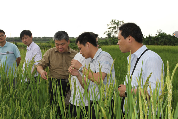 考察現場,大伙的目光都被兩個1128吸引住,從株葉型態到長勢長相,從每穗粒數到結實率(兩個品種結實率均超過90%),無不令人折服。同時,隆平的其他后續品種,如廣占2010、P88S/1812、培矮64S/1815等組合,在示范田里也嶄露頭角,優勢相當明顯。