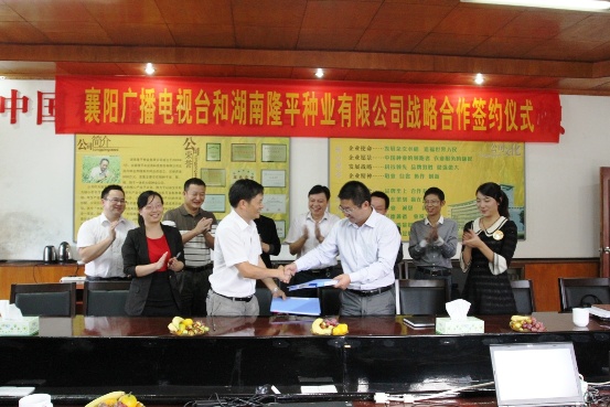2012年10月12日,丹桂飄香,我司與襄陽廣播電視臺在長沙市國家雜交水稻研究中心正式簽署戰略合作協議,拉開我司與媒體精誠合作的序幕。公司領導楊文星、范小兵、譚志軍、襄陽廣播電視臺黨委委員、副臺長張濤;黨委委員、副臺長趙星耀等出席簽約協式。