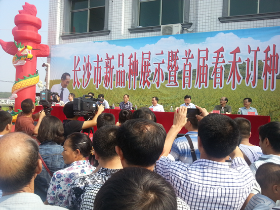 9月16日,長沙市種子管理站在瀏陽市淳口鎮的農作物品種展示基地召開了雜交水稻新品種觀摩會,有湖南隆平種業、湖南亞華種業、湖南科裕隆種業、湖南希望種業等36家種子企業的新品種參加展示。長沙市農業局、長沙市種子行業協會、瀏陽市委、各參展種子企業以及長沙市各地種子經銷商參加了觀摩,袁隆平院士親臨觀摩現場。我公司有廣兩優1128、廣兩優2010、隆香優130、深優9586、C兩優248等8個品種參加了展示,表現突出。