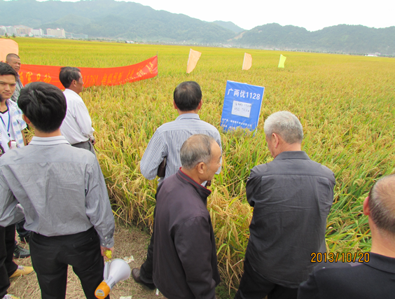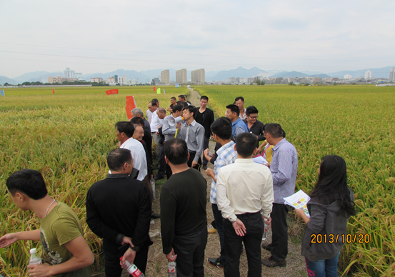 10月20日,浙江溫州市代理商浙江康籃農(nóng)業(yè)科技有限公司成功召開了超級稻C兩優(yōu)608 、廣兩優(yōu)1128 示范觀摩交流會,會議來自全市各鄉(xiāng)鎮(zhèn)的零售商40余位。一大清早40余位客戶已經(jīng)來到了東甌大酒店集合,等待出發(fā)。經(jīng)過一個小時的車程,零售商興致高昂的來到了田間進(jìn)行現(xiàn)場觀摩C兩優(yōu)608 、廣兩優(yōu)1128的示范田,田間會議上我公司張國偉經(jīng)理對C兩優(yōu)608、廣兩優(yōu)1128品種特性、株葉形態(tài)、結(jié)實(shí)率、米質(zhì)等方面作了詳細(xì)介紹。