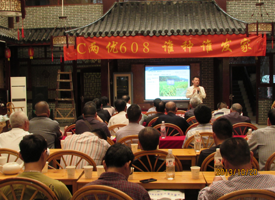 從示范田回來后,又進(jìn)行了室內(nèi)會議交流,室內(nèi)會議主要由李金益經(jīng)理講述了我公司的發(fā)展?fàn)顩r及C兩優(yōu)608、廣兩優(yōu)1128品種的運(yùn)作思路。針對今年持續(xù)高溫、幾次臺風(fēng)過后的C兩優(yōu)608 、廣兩優(yōu)1128的田間表現(xiàn)做出總結(jié),并對我公司強(qiáng)勢的后續(xù)品種作了簡要介紹。