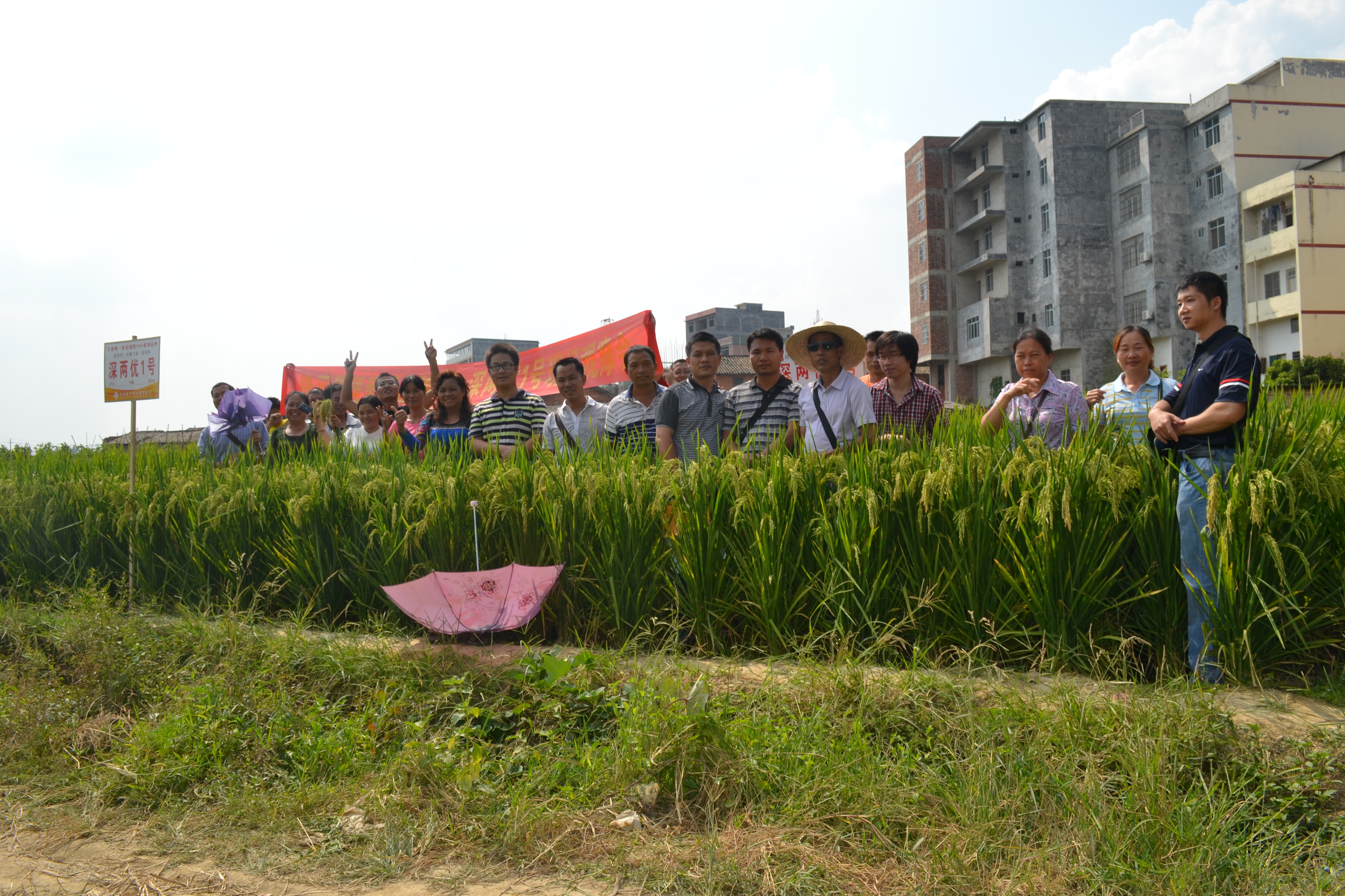 10月19日,南寧還是艷陽高照,來自南寧六城區各鄉鎮的零售商20多人在公司人員的組織安排下,先后觀摩了蘇圩鄉鎮的隆兩優534示范片和五塘鎮的深兩優1號、深兩優1813示范片。今年晚造南寧多數品種受臺風影響,感染細菌性條斑病相當嚴重,但我公司的隆兩優534、深兩優1號和深兩優1813抗性表現突出,充分展現了公司品種超強的抗病能力。