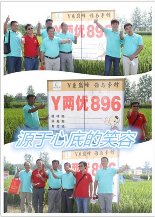 30日早上八點半,車隊準時到達室外會場,李總和張站長在田間為客戶介紹Y兩優896百畝示范片的栽培管理水平及特征特性。