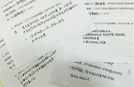 每一天的培訓結束后,會務組都會安排對實習生進行考試,并通過相互閱卷的方式幫助大家回顧一天所學的知識。一天的培訓下來,大家的感悟也是各不相同。