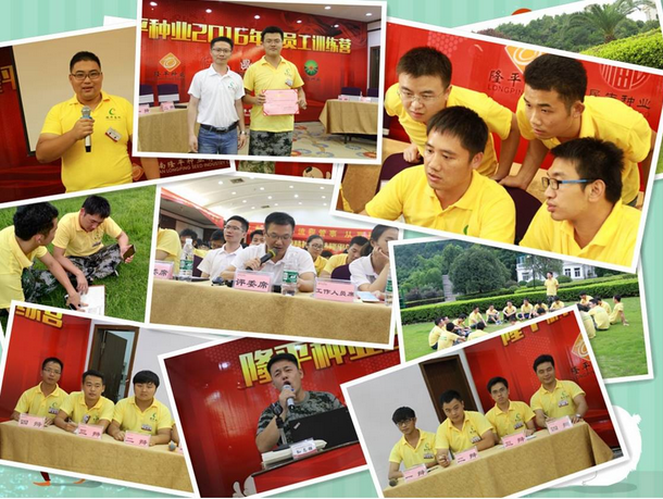 2016年7月17日-23日,為期6天7晚的隆平種業(yè)新員工培訓(xùn)活動在長沙跳馬鎮(zhèn)石燕湖金茂大酒店舉行,共有來自全國各戰(zhàn)區(qū)的200余名隆平新人參加。培訓(xùn)分為兩個(gè)階段,第一階段由隆平高科集團(tuán)總部組織的為期兩天三晚的文化融合課程,第二階段由公司組織的公司制度、專業(yè)知識、技能的培養(yǎng)課程。全程采取封閉式半軍事化管理模式。