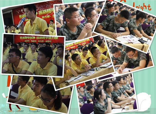 緊張嚴(yán)肅,活潑團(tuán)結(jié)。在7天的培訓(xùn)中,各連隊(duì)積極進(jìn)取,奮勇爭先。經(jīng)過7天的磨合,每個(gè)連隊(duì)都有了屬于自己連隊(duì)的默契,在最后的團(tuán)隊(duì)匯報(bào)中,各連通過一系列匯報(bào)活動展現(xiàn)了自己的風(fēng)采,從團(tuán)隊(duì)士氣展示到優(yōu)秀個(gè)人表彰,從圖畫展到才藝展示,各連的精彩匯報(bào)給所有的評審官帶來了非常大的驚喜。