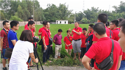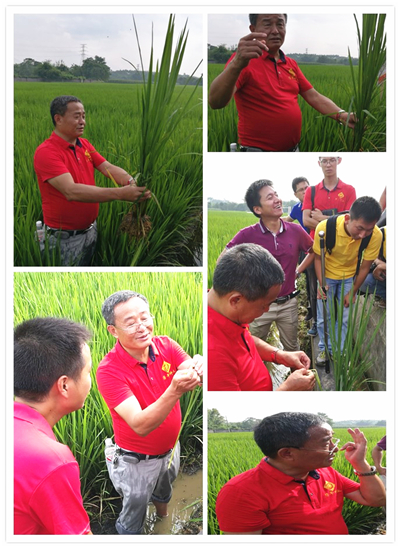 在田間,參訓人員抓住這次難得的機會,請教自己在工作中遇到的技術問題,如如何區分雜草稻,如何預估水稻破口期及時打藥,如何快速區分自己公司品種和其他公司品種等,廖老師頂著烈日,耐心細致地為大家答疑解惑。為了更好地解答大家的疑惑,廖老師還結合前期華南的各地實際情況,有針對性地為大家講解了防治矮縮病以及怎樣幫助農戶增產增收等關鍵知識。在田間2個半小時的學習讓大家受益匪淺,滿載而歸。