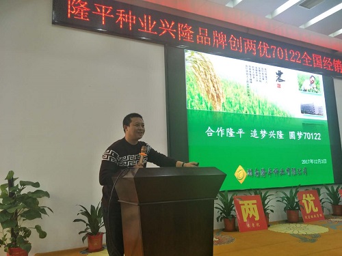2017年12月2日—12月3日,湖南隆平種業有限公司興隆品牌創兩優70122 全國經銷商大會如期召開,來自全國種業界的精英齊聚一堂,共謀創兩優70122銷售大計。 會議首先詳細介紹了創兩優70122抗病性強、分蘗強、有效穗多、高產穩產、米質優等優勢,讓參會代表們對創兩優70122有了全面的了解和認識。 為了讓大家對創兩優70122米質優的特點有更加清晰直觀的認識,本次會議特別設置了品米環節。外觀晶瑩透亮,珠圓玉潤、米粒整齊均勻、細膩滑潤,有顏值的創兩優70122讓大家對它的味道充滿了期待。 新鮮出爐的米飯,粒粒飽滿,香氣撲鼻而來,咬一口下去,濕度剛好合適,軟硬適中。米粒顆顆飽滿,松散卻又粘連,綿軟而不失韌性,吃到嘴里,口感軟糯香滑有筋道,讓大家食欲大開,有人直呼:“吃創兩優70122的米飯,根本不用吃菜!” 品米結束后,來自河南,江西和湖北的三位合作伙伴分別分享了他們與創兩優70122的不得不說的故事,讓現場的參會代表們對創兩優70122的了解更加深入。 接著,興隆品牌全國負責人李奎總經理給各位合作伙伴分析了當前種業形勢,并分享了興隆種業優勢以及未來發展目標。 最后公司高管譚總對本次會議進行總結,他強調我們隆平企業愿景是宏大的,力爭世界種業前5強是我們近年的奮斗目標,隆平愿與大家攜手共創輝煌。 至此,本次會議圓滿結束,大家也開始了新的征程,我們相信這次會議讓創兩優70122的種子種在了每位合作伙伴的心中,正在慢慢開始萌芽生長。