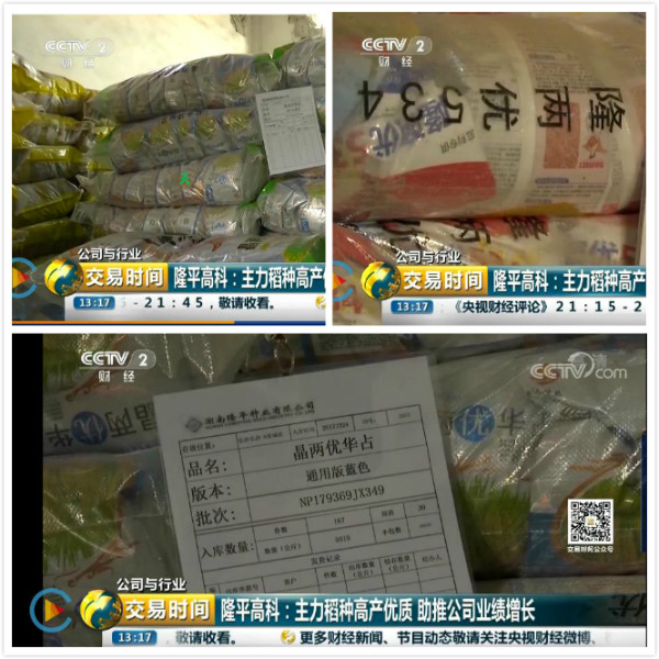 隆平高科2017年前三季度預收貨款超8億,發展勢頭迅猛,得到了社會的廣泛關注。2018年1月,中央電視臺CCTV交易時刻欄目組對公司進行專題報道,作為公司近年來推出的主力品種——晶兩優系列、隆兩優系列高調出鏡。